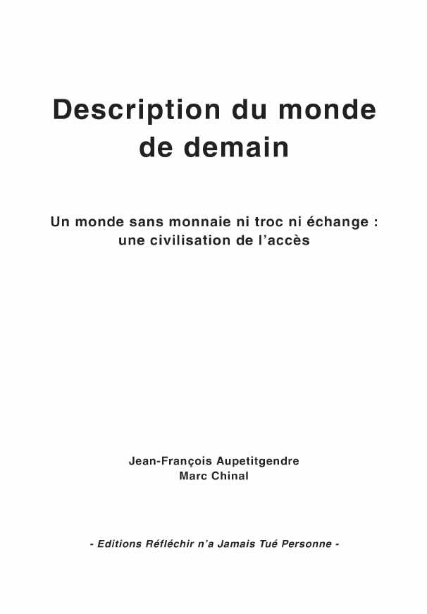 " Description du monde de demain un monde sans monnaie ni troc ni échange : une civilisation de l'accès "